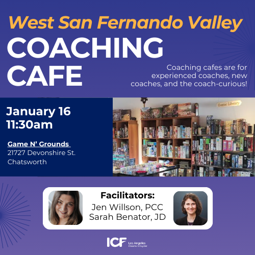 Attending a Cafe is an informal opportunity to build relationships and share ideas. There is no charge for participating, and you do not need to be a member of ICFLA to attend. Topics can range from how we maintain work/life balance as coaches to challenges we might face with our clients.