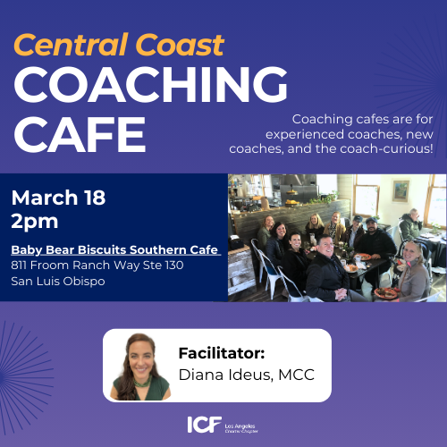 Attending a Cafe is an informal opportunity to build relationships and share ideas. There is no charge for participating, and you do not need to be a member of ICFLA to attend. Topics can range from how we maintain work/life balance as coaches to challenges we might face with our clients.