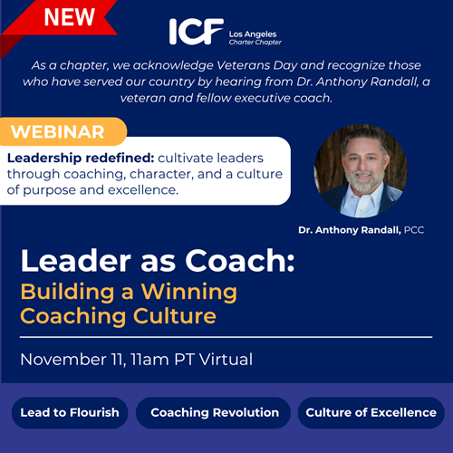 Tuesday, November 11, is Veterans Day. As a chapter, we acknowledge the holiday and recognize those who have served our country by hearing from Dr. Anthony Randall, a veteran and fellow executive coach.
