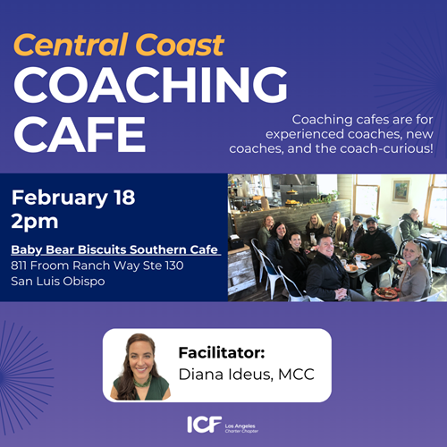 Attending a Cafe is an informal opportunity to build relationships and share ideas. There is no charge for participating, and you do not need to be a member of ICFLA to attend. Topics can range from how we maintain work/life balance as coaches to challenges we might face with our clients.