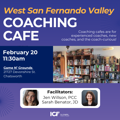 Attending a Cafe is an informal opportunity to build relationships and share ideas. There is no charge for participating, and you do not need to be a member of ICFLA to attend. Topics can range from how we maintain work/life balance as coaches to challenges we might face with our clients.