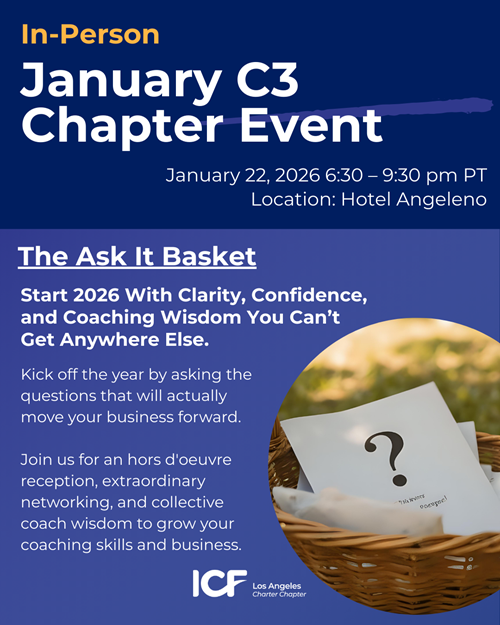 This year’s Los Angeles Chapter Annual Meeting is a special occasion for our members to connect, reflect, and celebrate the collective impact of our chapter. Together, we honor the innovation, resilience, and leadership demonstrated by the Board, as well as the transformative work across our coaching community.